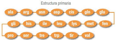 Estructuras Primaria : describe la secuencia lineal del residuos de aminoácidos en una proteína.